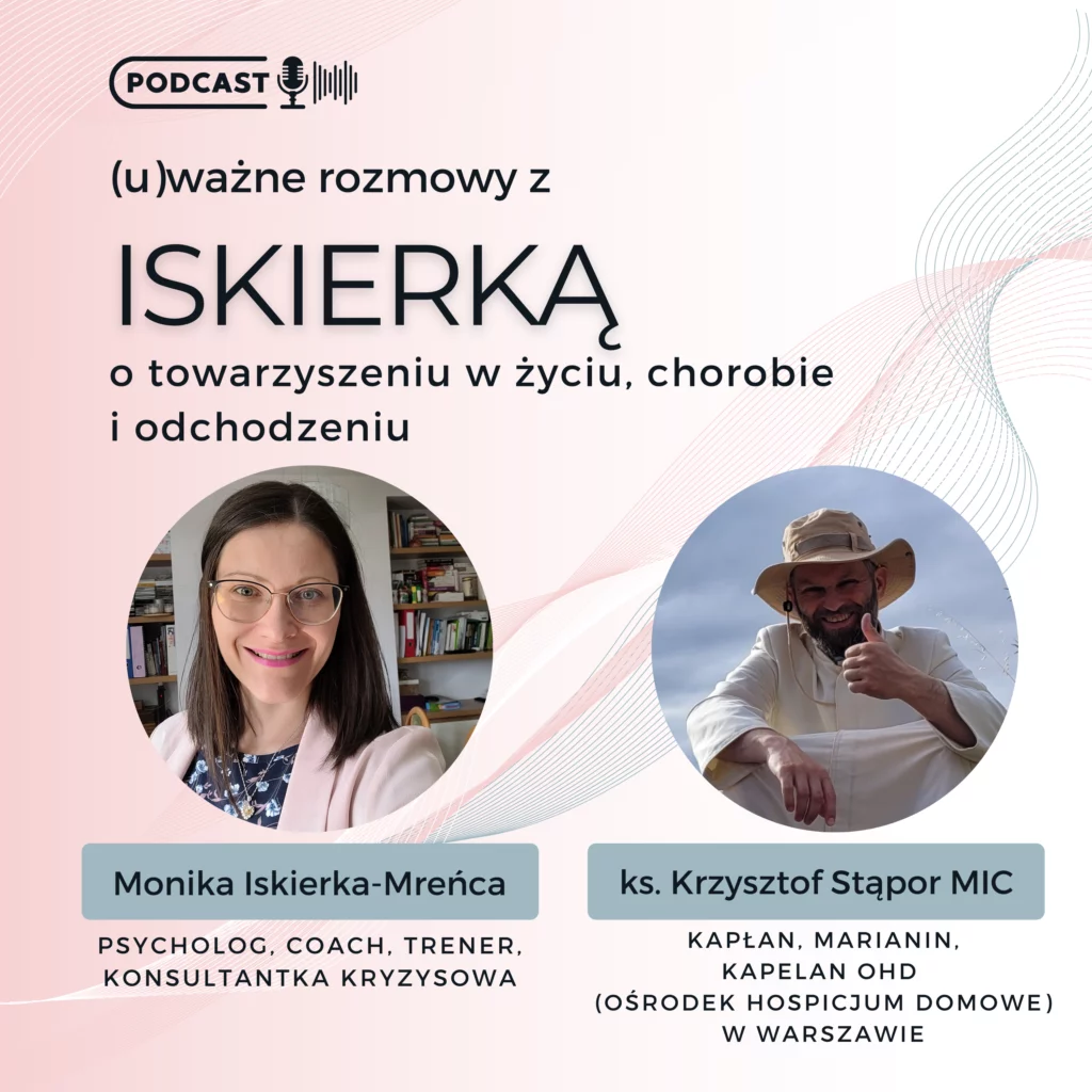 Ten odcinek podcastu jest również małą cegiełką do promocji filmu dokumentalnego „Siewca Nadziei”, o którym wspominamy pod koniec rozmowy. Jest to poruszający dokument o pracy ks. Krzysztofa Stąpora, kapelana hospicjum domowego. Fundacja „Nic Niemożliwego” , która tworzy ten dokument, pisze: „Film ukazuje jego [ks. kapelana] codzienność, w której towarzyszy chorym i ich rodzinom w trudnych chwilach, przynosząc im wsparcie, nadzieję i radość. Chcemy pokazać, jak ważna jest opieka paliatywna i duchowość w obliczu umierania, inspirując widzów do refleksji i większej empatii. „Siewca nadziei” to film o znaczeniu obecności i sile życia w obliczu śmierci. Więcej informacji o projekcie i możliwość wsparcia na stronie internetowej.